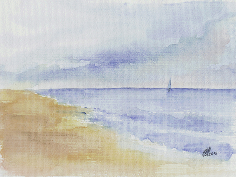 Akvarel predstavuje akčné plynutie hmoty a času...